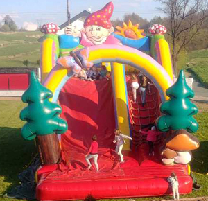 Zjeżdżalnia KrasnalWymiary: 12m-długość 6.5m-szerokość 7m-wysokość Wiek uczestnikow: od 2 roku zycia Max. liczba uczestników: 12 osób |