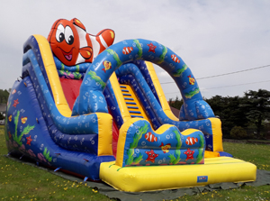 Zjeżdżalnia RybkaWymiary: 11m-długość 6.5m-szerokość 7m-wysokość Wiek uczestnikow: od 2 roku zycia Max. liczba uczestników: 12 osób |